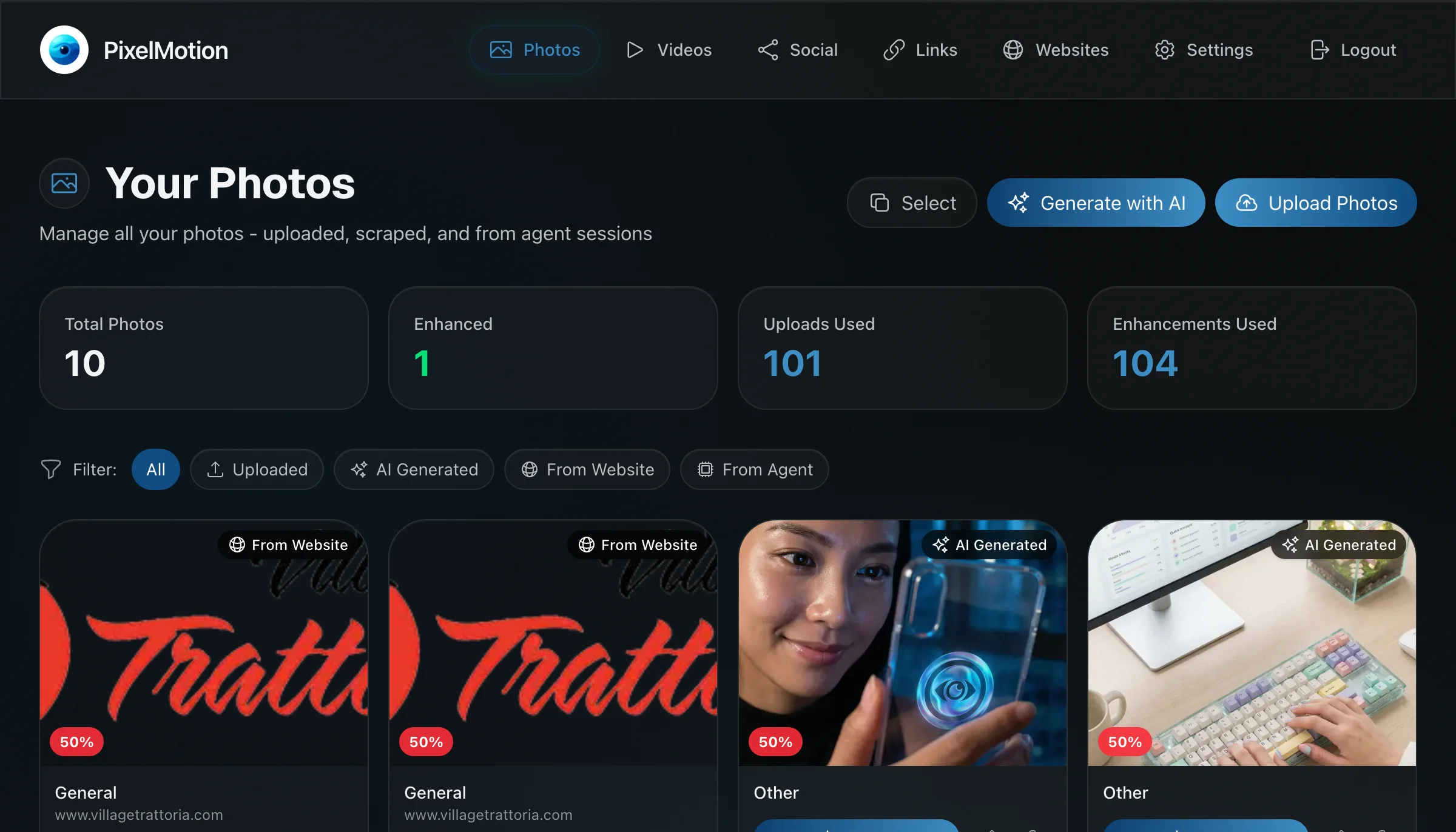 Solution: PixelMotion's batch processing generates videos for your entire catalog from existing product photos, making video coverage for every SKU affordable